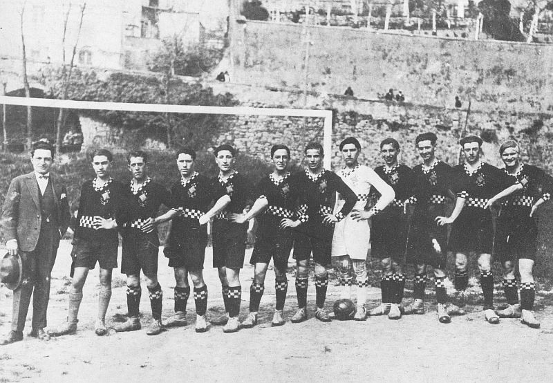 il dirigente Guglielmino, Vincenzo Dameri, Luigi Carenzo, Luigi Rabbia, un calciatore non identificato, Dellepiane, Luigi Traverso, Domenico Dameri, Carlo Carpeneto, "Olimpo", Lelio Milanesi, "Pierino".