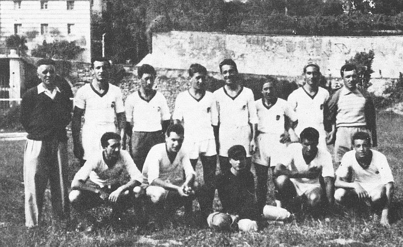 Molinari, Franco Bergaglio,. Accosciati: Ferruccio De Benedetti, Nino Barile, Ermanno Carega, Piero Carpeneto, Gino traverso. |